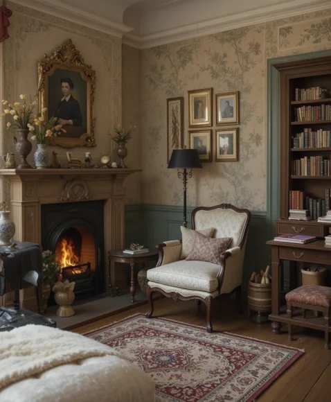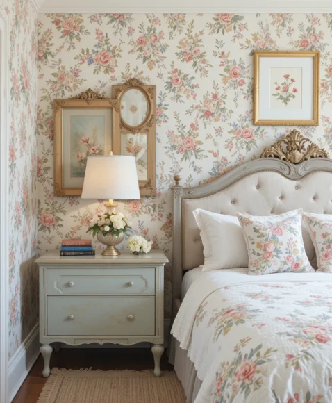 Floral wallpaper can instantly transform a plain wall into a Victorian-inspired statement. I suggest choosing soft floral patterns in pastel colors for a dreamy effect. Pairing this with vintage frames or art creates a layered look that feels cozy, personal, and reminiscent of old-world charm.