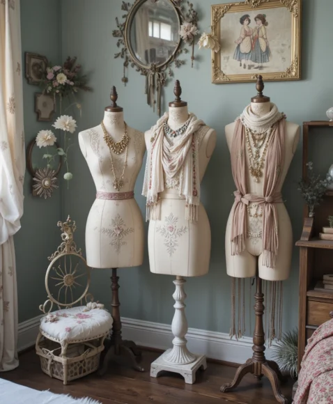 Antique dress forms double as decor and functional storage. I enjoy dressing mine with vintage scarves or jewelry. They add a subtle Victorian touch and make the room feel curated and stylish without overwhelming the space.