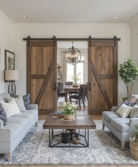 Sliding barn doors bring a rustic charm and can act as functional space dividers. I added a barn door to separate my living and dining areas, and it instantly became a focal point, combining style and practicality.