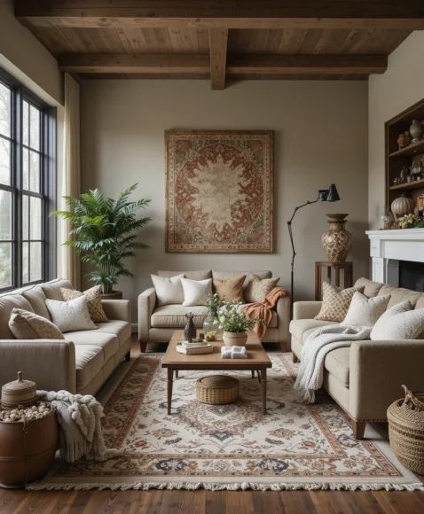 Layered rugs with textures like jute or wool enhance the rustic aesthetic while providing comfort. I added a patterned wool rug under my seating area, and it instantly added warmth and defined the space without overpowering the design.