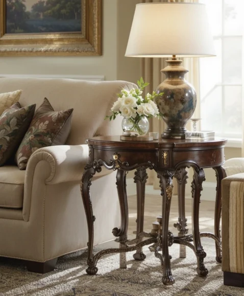 Place antique side tables next to modern seating arrangements. Their intricate designs complement contemporary furniture and provide convenient spots for lamps, coffee cups, or decorative items.