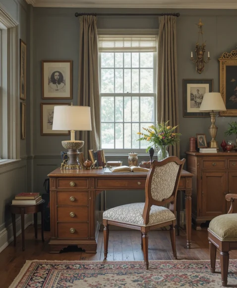 A vintage writing desk can become a functional accent in your living room. Pair it with a modern chair or sleek lamp to maintain a balanced aesthetic that’s both practical and stylish.