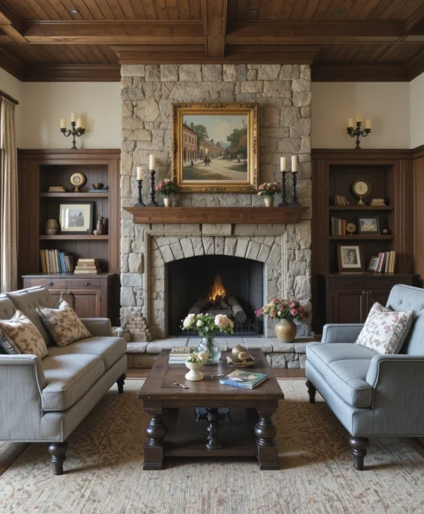 A classic stone or wooden fireplace can serve as the focal point in your living room. Surround it with contemporary seating to create a harmonious mix of warmth and style. Adding antique candlesticks or vintage artwork above the mantel further enhances its appeal.