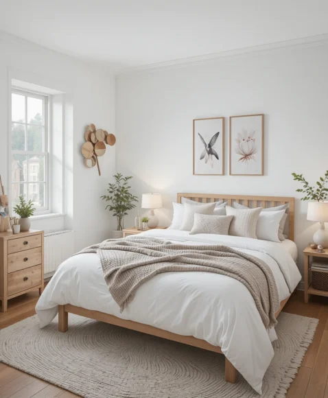 For a simple yet stylish apartment bedroom, take inspiration from Scandinavian design. Focus on white walls, natural wood furniture, and minimal decor. Incorporate cozy elements like a chunky knit blanket or a soft rug. The combination of practicality and simplicity creates a calm, inviting space ideal for unwinding after a busy day.