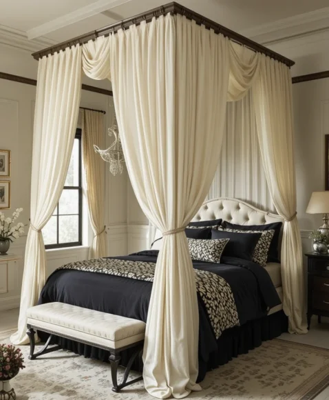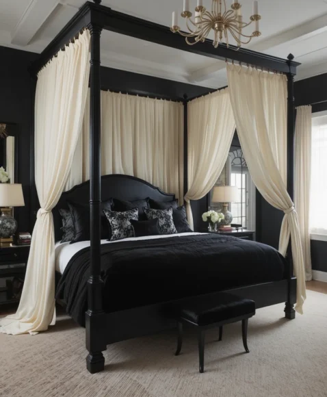 - 5. Black Canopy Bed Styled With Cream Drapes
