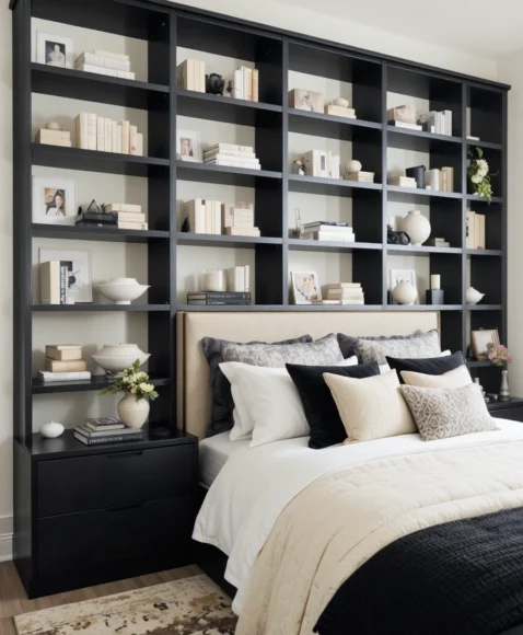 - 17. Black Shelving Styled With Cream Décor Pieces