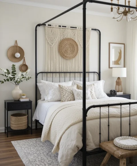 14. Cream Boho Textures With Black Metal Accents