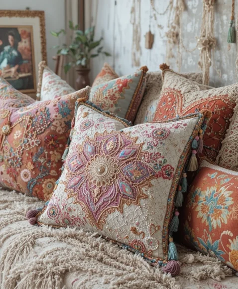 These pillows add comfort and personality while staying true to the boho spirit.