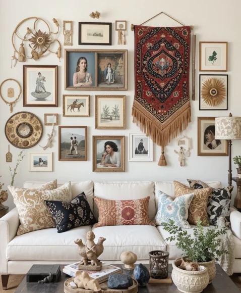 11. Boho-Inspired Gallery Wall for Visual Interest