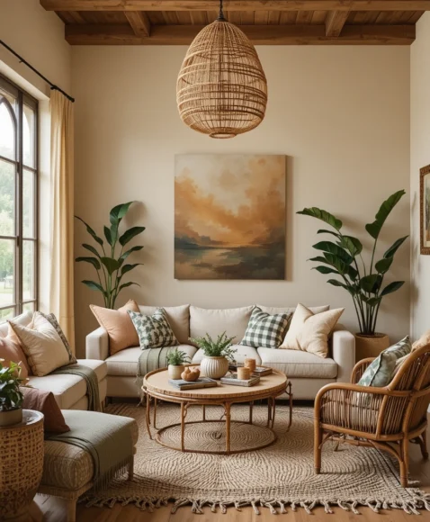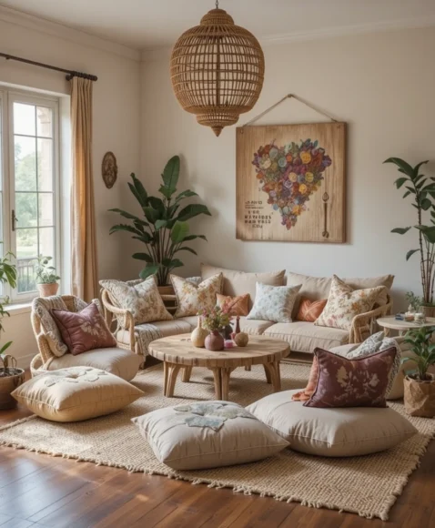 Let your boho spirit guide your design choices, and you’ll have a living room that perfectly reflects your free-spirited style—a place where comfort, creativity, and charm effortlessly intertwine.