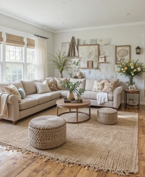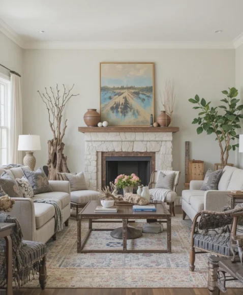 By using wood, stone, linen, greenery, and textured elements thoughtfully, you can design a living room that not only looks beautiful but feels like a sanctuary.
