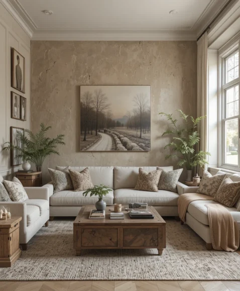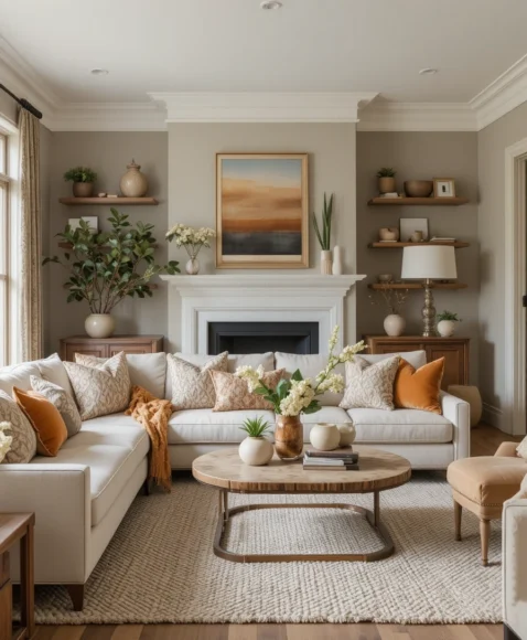 Using a neutral color palette with hints of earthy tones like rust, ochre, and sage creates harmony. I find that adding small touches such as cushions, throws, or vases in these colors makes the room feel cohesive and inviting without overpowering the senses.