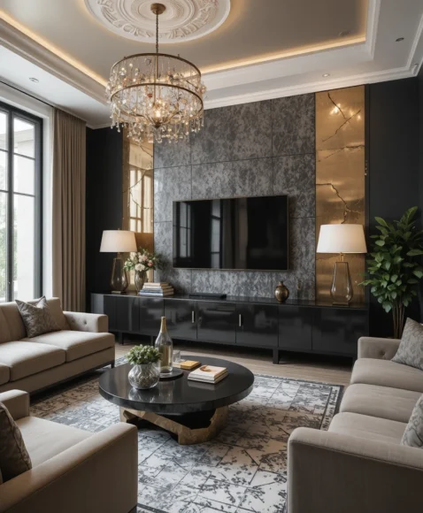 Metallic finishes—gold, bronze, or silver—add glamour and shimmer without being too flashy. Light reflects beautifully off metallic paint or panels, making the space feel brighter. I find metallic accents perfect for contemporary or luxurious interiors. They look stunning with dark furniture and layered lighting.