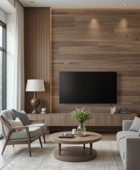 A wooden accent wall adds warmth and character, especially if you love natural materials. Vertical shades look elegant, while horizontal planks feel cozy and modern. I find that wood instantly softens sharp lines in the room and creates a more welcoming environment. Choose light oak for a Scandinavian touch or walnut for rich, dramatic vibes.