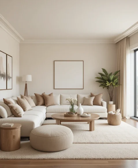 Shades of gray, beige, or even soft pastels can be layered in furniture, accessories, and textiles, maintaining a cohesive, peaceful atmosphere.