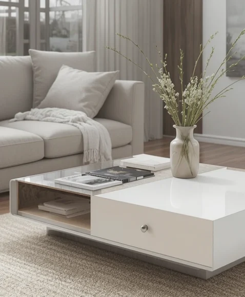 Choose a coffee table that serves a functional purpose while adhering to minimalist principles.