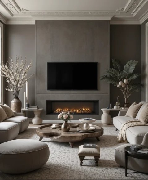 A moody neutral living room has a special kind of charm—deep tones, soft textures, and subtle contrast come together to create a calming space that still feels rich and expressive.