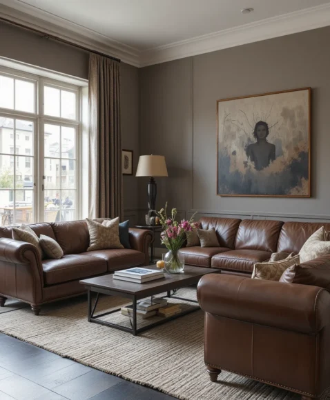 Brown leather brings warmth and rugged elegance to a moody neutral room. I enjoy pairing it with charcoal floors or taupe walls for a perfect contrast. Leather ages beautifully and adds character over time. It also mixes well with soft neutrals and woods. This piece becomes a stylish anchor in the room.