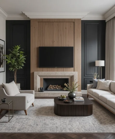 Wall panels add architectural interest without color. I love using wood or ribbed designs painted in moody neutrals. They create depth and make the room feel more luxurious. Texture also breaks up large dark surfaces. It’s a stylish way to elevate the walls.