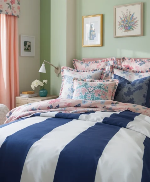 Adding classic striped bedding instantly lifts your room’s style. Choose crisp navy, pastel pink, or green stripes to create a lively yet polished look. Stripes pair wonderfully with solid-colored furniture and accessories, giving your bedroom a timeless preppy feel. You can mix different stripe widths to create a playful, dynamic design that feels curated.