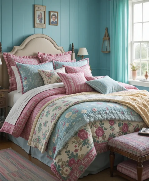 Layer your bed with comforters, quilts, and throws to create a welcoming and stylish look. Mixing textures and colors keeps the room visually interesting while maintaining a preppy, classic style. This layering approach also allows flexibility for seasonal updates.