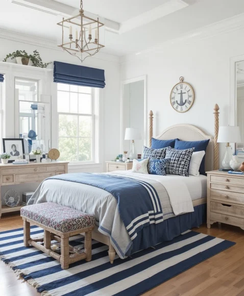 Nautical touches like anchors, rope accents, and navy-blue details create a fresh, preppy atmosphere reminiscent of summer by the sea. Pair these with light wood furniture and crisp white walls to achieve a breezy, sophisticated aesthetic. Adding a striped rug or throw pillows can subtly reinforce the theme without feeling overdone.