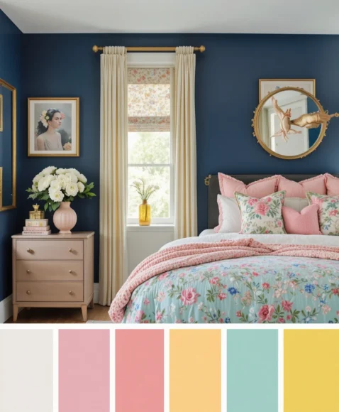 Using a preppy color palette like navy, blush, mint, or pastel yellow creates a cheerful yet polished vibe. Add small pops of gold, brass, or bright decor items for contrast. A balanced color scheme keeps the room feeling fresh, light, and intentionally designed.