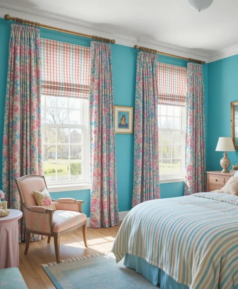 Curtains or blinds in bold colors or patterns can make a major statement in a preppy room. Consider gingham, stripes, or soft pastels. Drapes not only add style but also control natural light, allowing your room to feel bright and airy during the day.