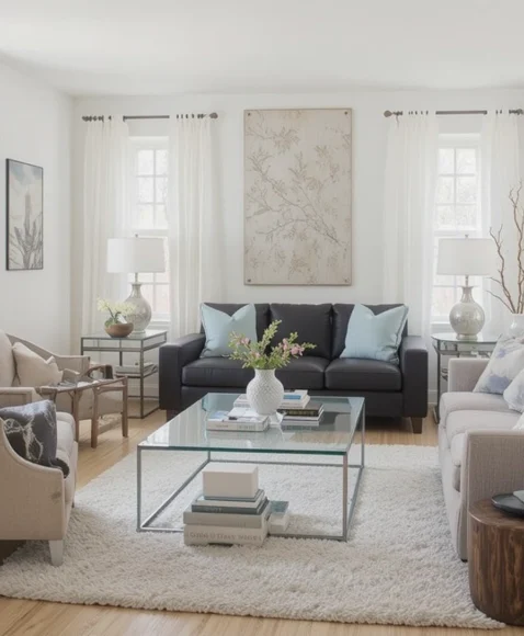 Mirrors bounce light around, making your living room look instantly bigger. I love placing a large mirror behind a sofa or near a window—it’s a simple trick that visually doubles your space. Choose frames that match your décor style for a cohesive look.