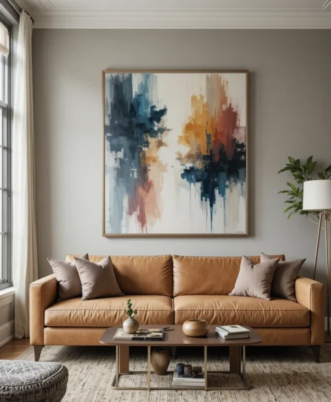 One big piece of art creates a clean, cohesive look. It avoids clutter and makes the room feel intentional. I personally enjoy a large abstract painting that adds personality without overwhelming the space.