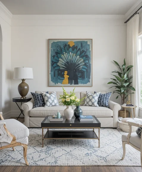 Too many décor items can feel cluttered. Instead, I like choosing one or two bold statement pieces—like a large artwork or a standout vase. This keeps the room stylish without adding visual noise.