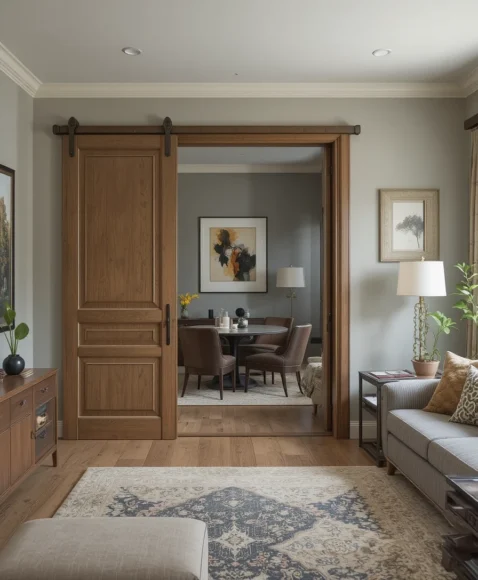 Sliding doors save a surprising amount of space. They’re especially useful in compact living rooms where swing doors block furniture placement. I’ve seen how a simple sliding door can instantly improve the room’s layout.