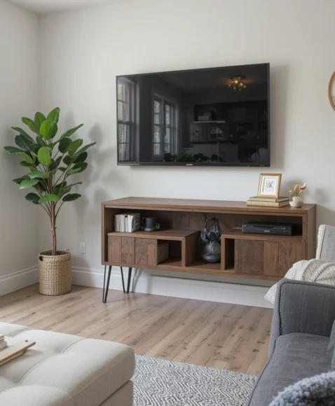 Mounting your TV on the wall avoids the need for a bulky console table. This gives you more room to move around and keeps the floor open. I also love how clean and modern a mounted TV looks.