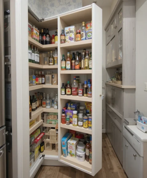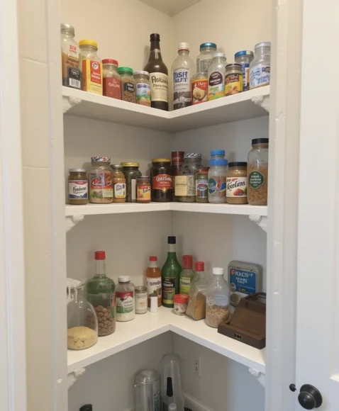 Corners often go unused in tiny pantries. I installed small corner shelves for jars and bottles, which has transformed wasted space into practical storage. It’s amazing how much more organized the pantry feels.