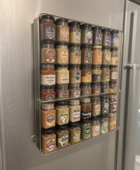 Using magnetic spice jars on a metal board or the side of the fridge helps me organize my spices in a visually appealing way. It’s perfect for small pantries where cabinet space is limited. I always know exactly where each spice is.