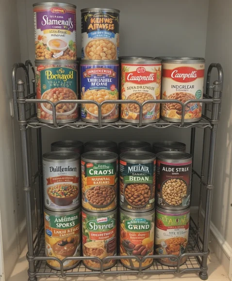 Stackable racks allow cans to be stored neatly in layers, saving counter space. I love seeing all my soup and beans at a glance. It also prevents cans from toppling over and keeps everything orderly.