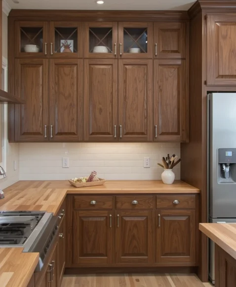 Walnut kitchen cabinets offer a rare blend of beauty, durability, and versatility. From modern designs with sleek counters to farmhouse styles with cozy backsplashes, walnut adapts effortlessly to different tastes.